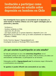 Invitación a participar como entrevistado en estudio sobre depresión en hombres en Chile